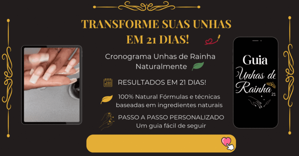Agora que você aprendeu a lixar suas unhas da forma correta, é hora de potencializar ainda mais os resultados! Com o Cronograma Unhas de Rainha Naturalmente, você tem um guia passo a passo para alcançar unhas fortes, saudáveis e lindas.